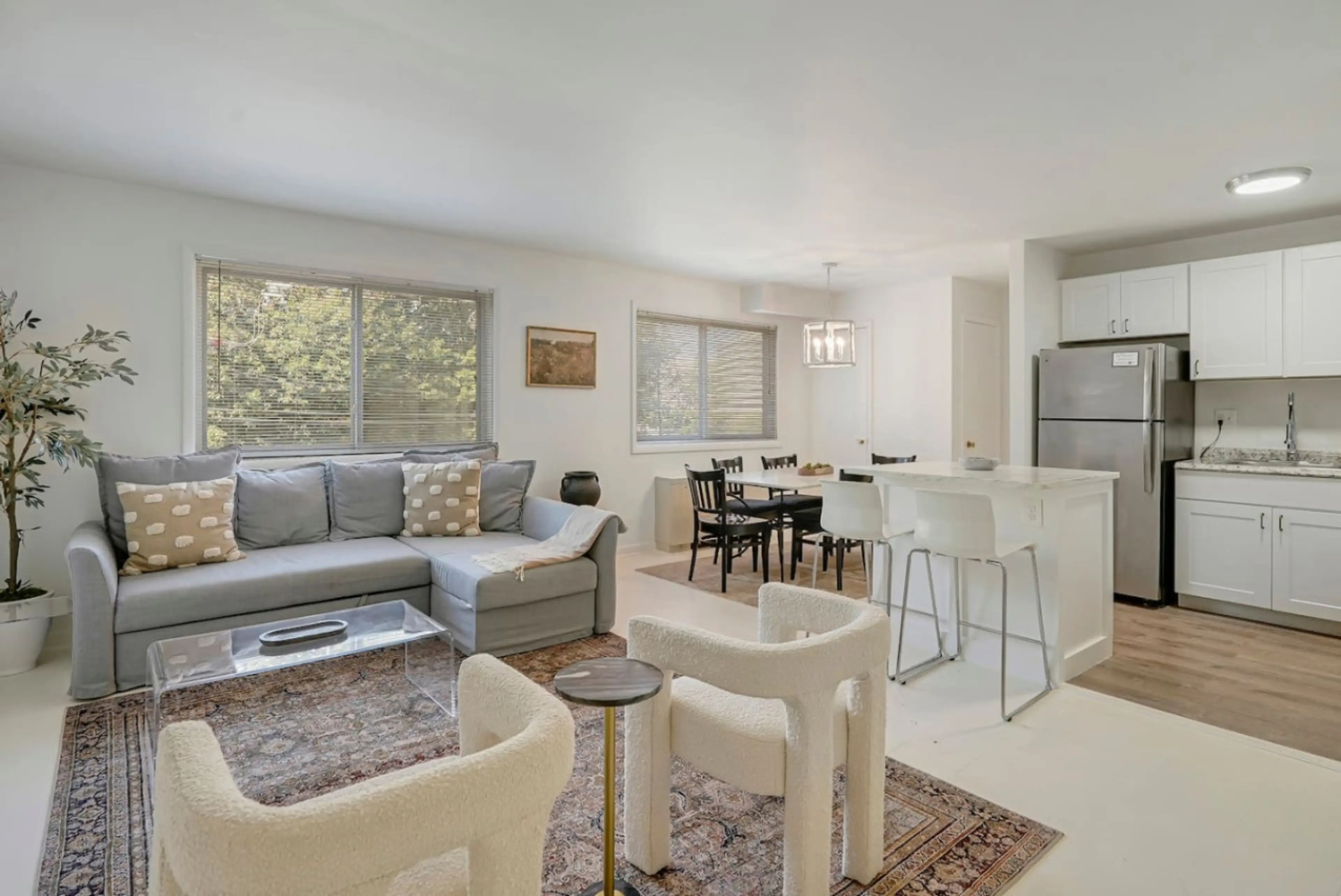 Situated in National Landing on the leafy edge of Crystal City. Walkable to metro and retail. Complementary private parking included. 2 bedrooms (King; Queen/Queen) plus pull out Queen bed sectional sofa. Enjoy this spacious and stylish apartment set across the street from a large quiet park that i...